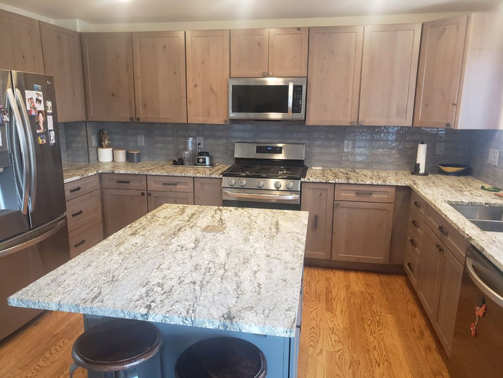 A fresh take on modern design, this kitchen renovation enhances efficiency with sleek cabinetry, durable surfaces, and a warm, welcoming atmosphere.